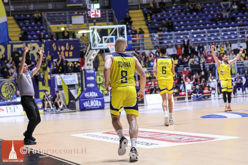 Durante l’ultima frazione Torino lotta, con alcune belle giocate di Schina, ma perde lucidità a seguito dell’infortunio di Pepe, permettendo alla formazione veneta di riacquisire vantaggio fino al risultato finale di 77-87.